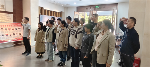 展馆内容结合景观、雕塑、油画等艺术表现手法,生动地再现了武汉地区人民辛亥首义、抗日战争等革命斗争的光辉历程。在图书档案馆党支部牟凯旋书记的带领下,全体党员重温入党誓词。