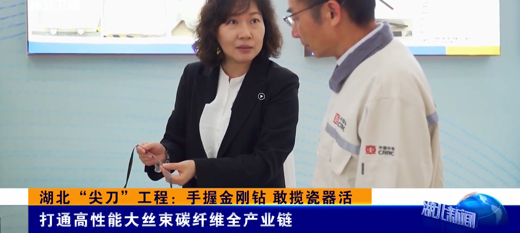 11月2日,湖北卫视专题栏目湖北“尖刀”工程,专题报道了公司丁国平教授团队手握金刚钻、敢揽瓷器活,打通高性能大丝束碳纤维全产业链的典型事迹。全文报道如下: